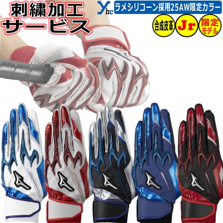 野球 ソフトボール 刺繍加工サービス ミズノ 展示会限定商品 少年用バッティンググローブ シリコンパワーアーク DI レプリカ ジュニア用 バッティング手袋 1EJEY560 両手用 ソフトボール 刺繍 2025AW ybc プレゼント |
