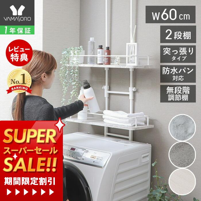【1年保証&当店限定特典付】ランドリーラック 突っ張り 防水パン スリム 洗濯機ラック 幅60 ロータイプ 収納棚 ラダー はしご 棚2段 隙間 すき間 収納ラック 棚可動 大理石柄 ウォールラック おしゃれ 北欧 エコー Echo |
