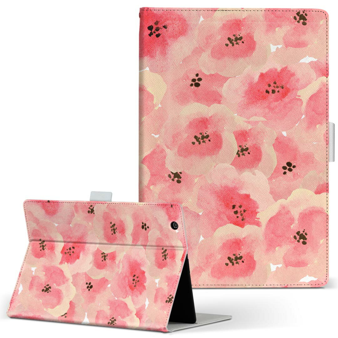 Qua tab QZ10 KYT33 用 タブレット ケース キュアタブ キューゼットテン Lサイズ 手帳型 タブレットケース カバー レザー フリップ ダイアリー 二つ折り 革 012157 花 花柄 ピンク