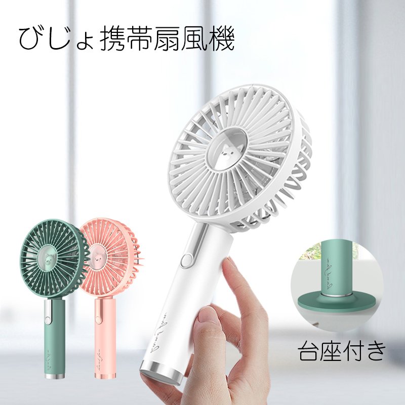 ミニファン 携帯扇風機 モバイルバッテリー扇風機 折り畳み式 扇風機卓上扇風機 猫耳付き