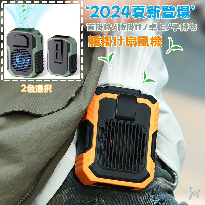 4WAY腰掛けファン 4WAY扇風機 5000mAh 携帯扇風機 ベルトファン 【ライト+モバイルバッテリー機能】3段階風量調節 静音 熱中症対策