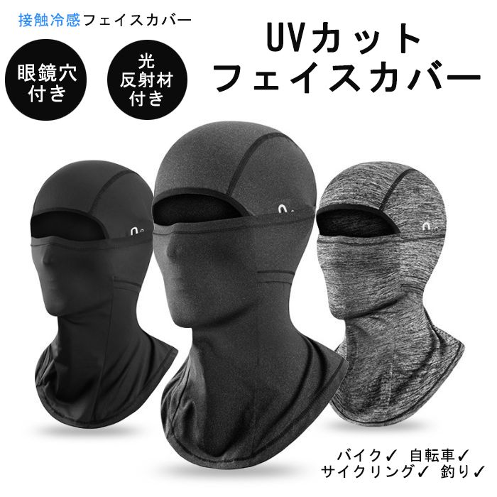 【送料無料】UVカットフェイスカバー 夏用 バラクラバ メンズ 冷感 日焼け止め フェイスカバー 通気 吸汗速乾 自転車 ロードバイク ヘルメットインナー 眼鏡穴 光反射材付き 目出し帽 バイク 釣り サイクリング 作業用 マスク 紫外線カット 接触冷感 ひんやり