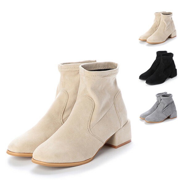 ブーツ ショートブーツ 太ヒール ローヒール 5cmヒール スエード 調 合皮 シンプル シューズ 靴 レディース ブラック グレー ベージュ