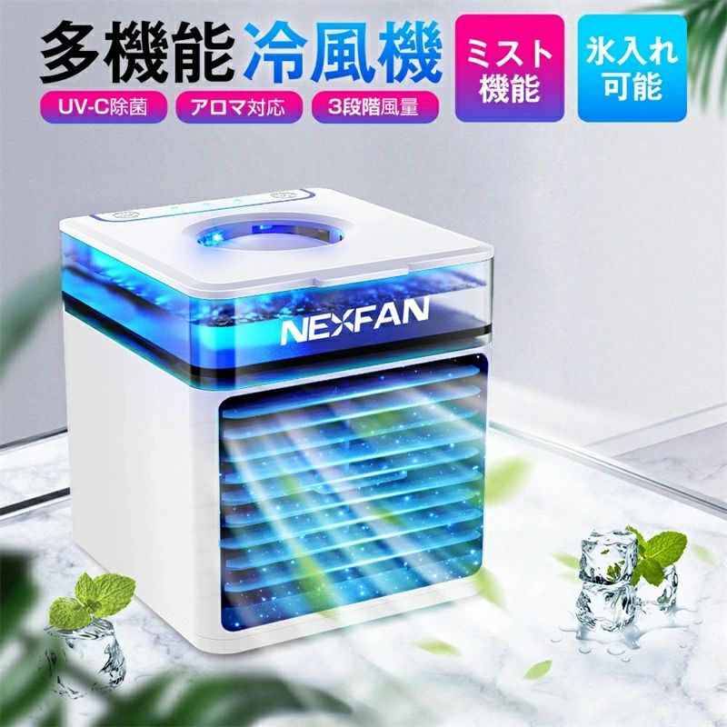 冷風機 冷風扇 3段階風量調節 7色ライト付き 空気浄化 静音 ナノミスト スポットクーラー 卓上冷風扇 卓上扇風機 小型 携帯扇風機 ポータブルエアコン 冷却加湿 扇風機 USB充電式 オフィス アロマ対応