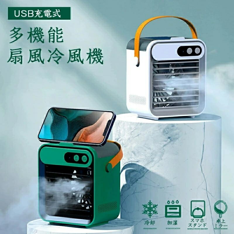 取っ手 ポータブルエアコン 1秒冷却 ミニクーラー 熱中症対策 冷風 ひんやり 加湿器 卓上 小型 静音 冷風扇 ミニクーラー