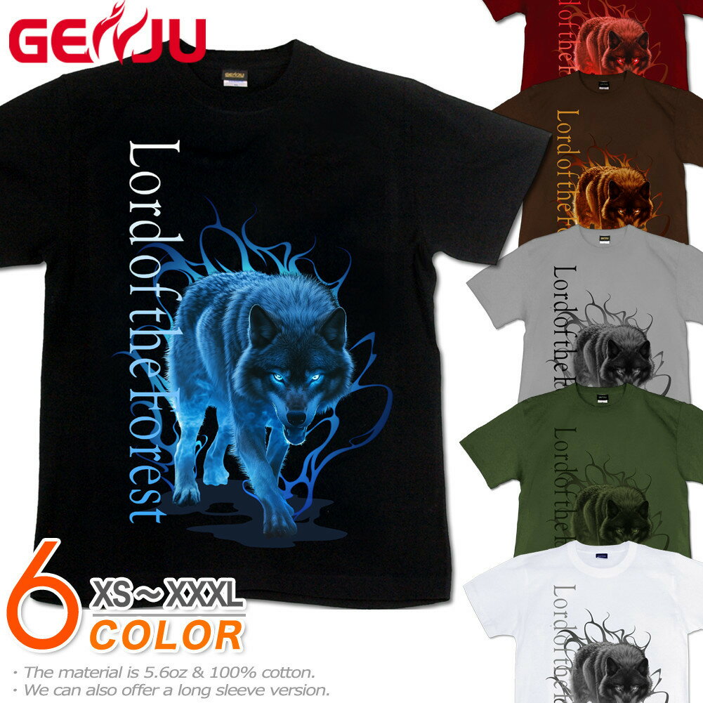 GENJU オオカミ 狼 おおかみ ウルフ 動物 クール 犬 メンズ レディース Tシャツ 半袖 長袖 Lord of the forest 大きめサイズあり XXL XXXL 2L 3L 4L