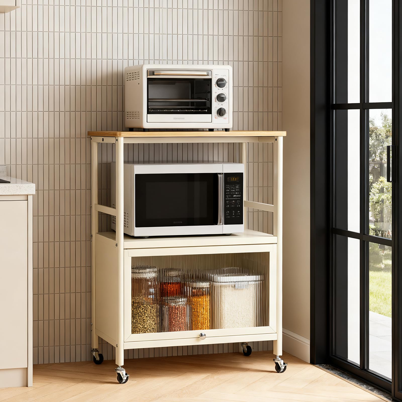 レンジラック キッチンラック 棚 レンジ台 おしゃれ 省スペース 扉付き 頑丈 高耐荷設計 強度安定 多機能 炊飯器/プリンタ/小型冷蔵庫対