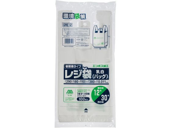 【レビュー投稿で100円OFFクーポン】ジャパックス 省資源レジ袋 東12号・西30号 乳白100枚 GRE12 レジ袋 乳白色