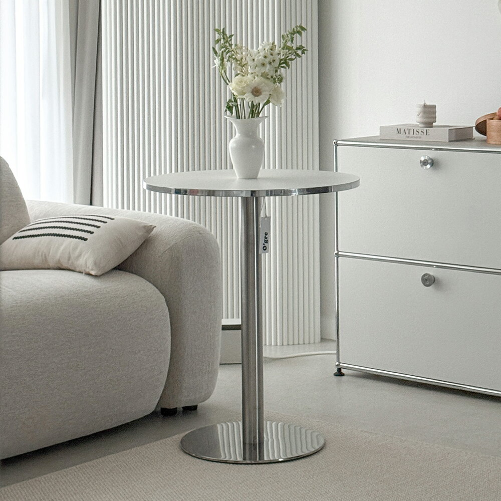O'gre オグレ シルヴェンラウンドテーブル 韓国インテリア ホワイト シルバー ミニマル 食卓 座卓 ダイニングテーブル ソファーテーブル 60x73.5cm