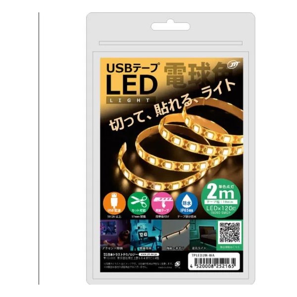 【25日は24時間限定クーポン配布】JTT ジェイティーティー)USB テープLEDライト 2m 電球色 TPLED2M-WA(2544184)