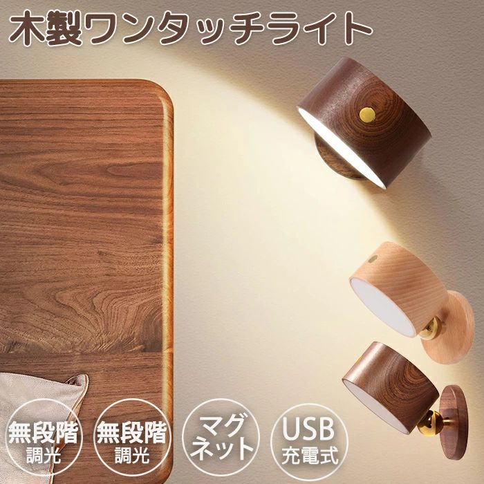 タッチライト LEDライト ブラケットライト 木製 USB充電式 壁掛け ミニ 小型 省エネ 360度調整 3色切り替え 無段階調光 階段ライト 壁ライト ウォールライト ナイトライト 子供部屋 寝室 書斎 読書 丸型 マグネット 充電式 穴あけ不要 工