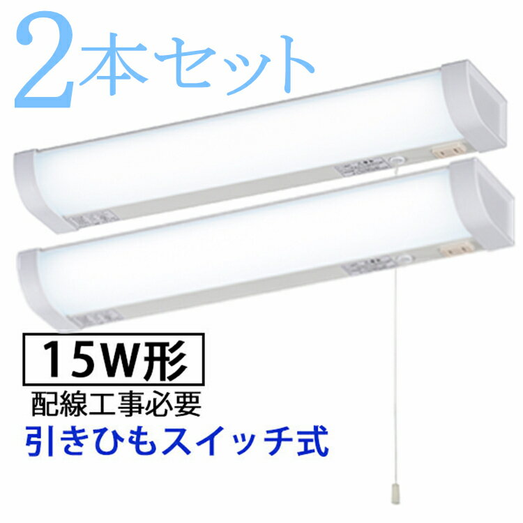 【2本セット】【1年保証】 キッチンライト led 引きひもスイッチ 15W形 LED流し元灯 キッチンライト スイッチ式 手元灯 LED 多目的灯 LEDライト 配線工事必要 昼光色 長寿命 省エネ 棚下 壁面 キッチン 台所 LED蛍光灯 15W形 LED照明器具 オーム電機