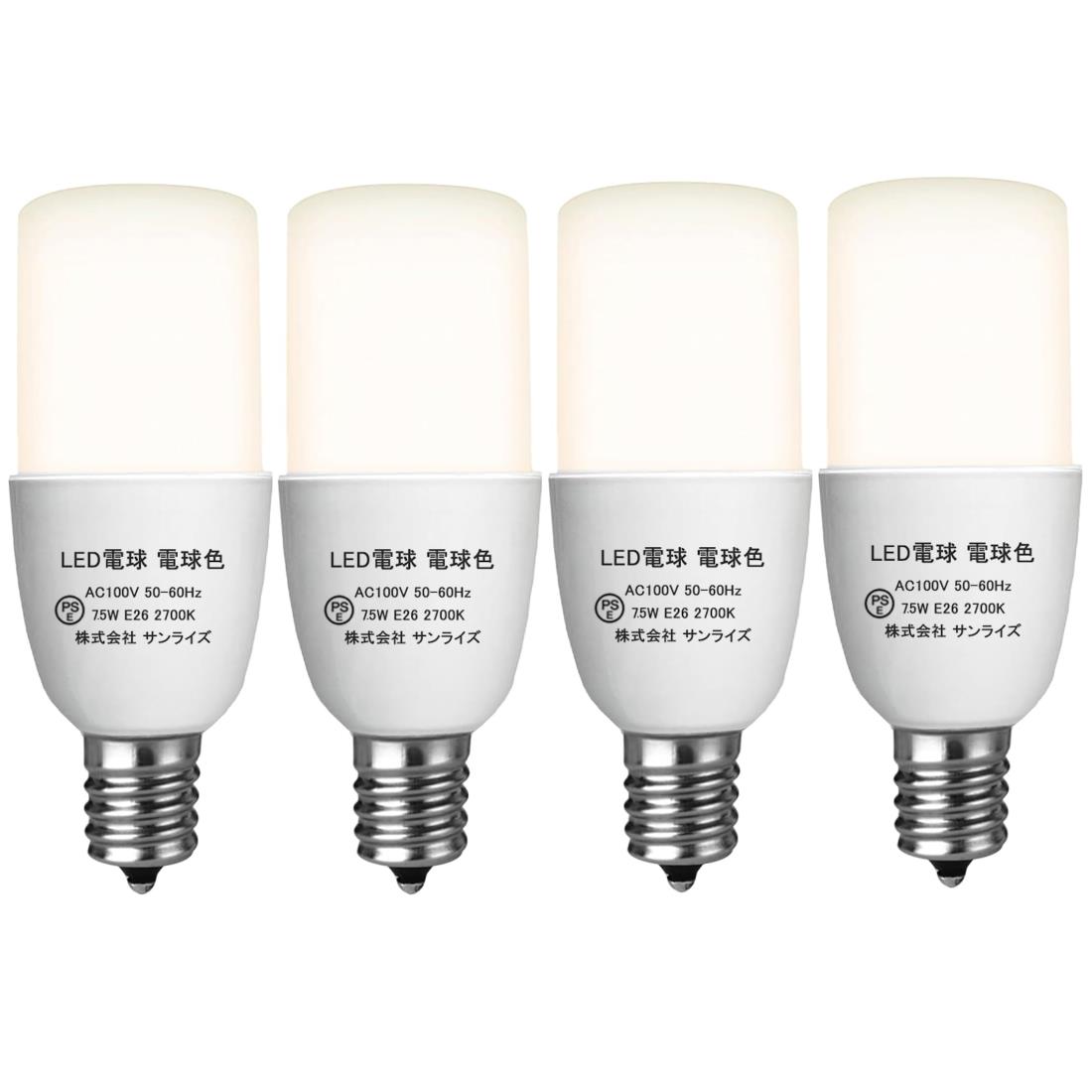 GOHDLAMP LED電球 T形タイプ E17口金 60W形相当 電球色 1190lm 断熱材施工器具対応 全方向タイプ 電球型蛍光灯 EFD25・EFD15形代替推奨 風呂 キッチン 洗面所照明 ledライト 4個セット (E17口金-電球色)