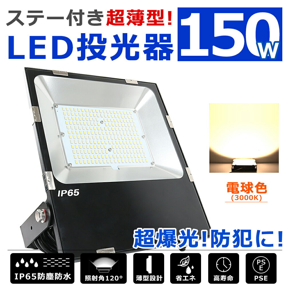LED 投光器 150W 30000lm高輝度 LED投光器 電球色 3000K 薄型 広角120度 IP65 防塵防水 屋外照明 5mコード付き ledライト 看板灯 集魚灯 作業灯 現場工事 防災グッズ 緊急照明 ワークライト 壁掛け照明 舞台照明 夜間照明 アウトドア 駐車場灯 ナイター キャンプ 非常灯 人気