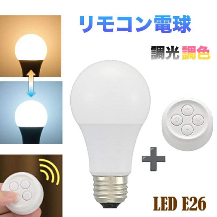 【電球でリモコン照明に】リモコン電球 LED電球 電球 E26 調光調色 調光 調色 led 電球 リモコン付き リモコン付 リモコン式 60W 60W相当 形 E26口金 広配光 省エネ 長寿命 ledライト 簡単取り付け 遠隔操作 小さいリモコン 電球色 昼白色 昼光色