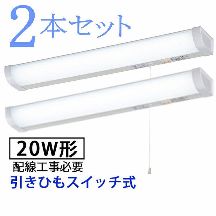 【2本セット】【1年保証】 キッチンライト led 引きひもスイッチ 20W形 おしゃれ 流し元灯 手元灯 キッチン LED流し元灯 照明 多目的灯 LEDライト 配線工事必要 昼光色 長寿命 省エネ 棚下 壁面 キッチン 台所 LED蛍光灯 20W形 LED照明器具 オーム電機