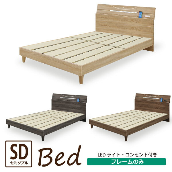 ベッド セミダブルベッド ベッドフレーム 棚付き LEDライト付き 照明付き コンセント付き すのこ ヴィンテージ モダン おしゃれ