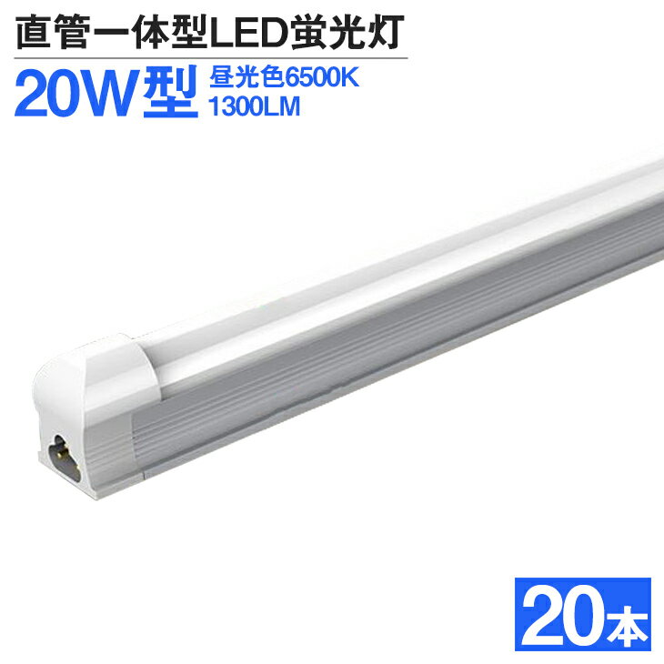 送料無料 LED蛍光灯 20本 20W形 高輝度 1300LM 昼光色6500K 60cm T8 一体型 直管 led 蛍光灯 T8チップ 消費電力9W 天井 LEDライト 広角 蛍光灯 節電 取付簡単 led照明 ベースライト AC 110V 1年保証 PSE