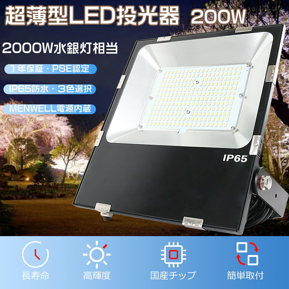投光器LED 200W LED 投光器 新型 超薄型 投光器 LED 屋外 作業灯LED 防水 LED ワークライト200W 40000lm LED投光器 屋外用 200W LEDライト LED照明器具 天井 吊り下げ ノイズなし IP65防水 夜間作業 舞台照明 薄型 LED投光機 看板灯 LED船舶灯 集魚灯 壁掛け照明 野外灯