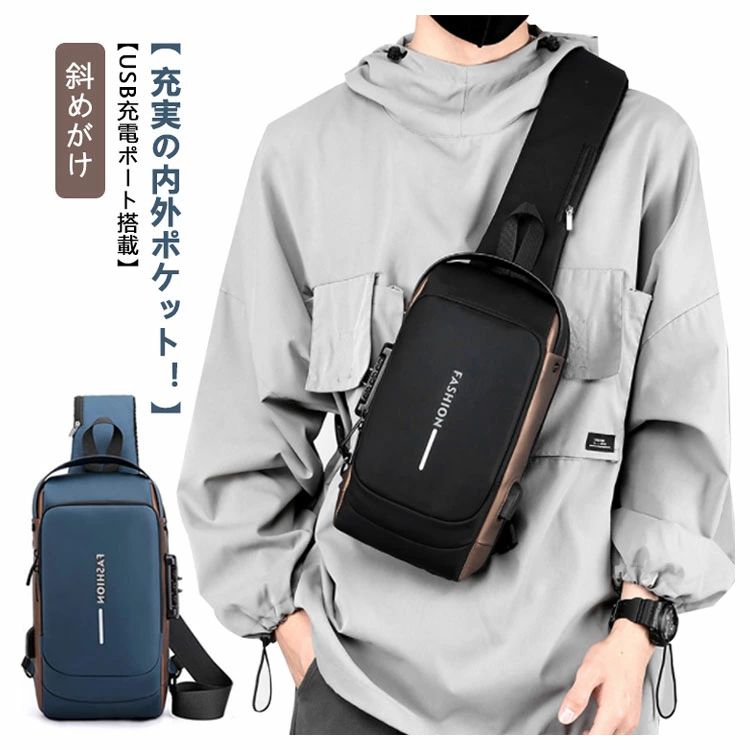 【15%offクーポン配布中! かっこいい 盗難防止 軽量 撥水 usb充電ポート付き 肩掛け 斜めがけ 大容量 メンズ ショルダーバッグ ボディバッグ