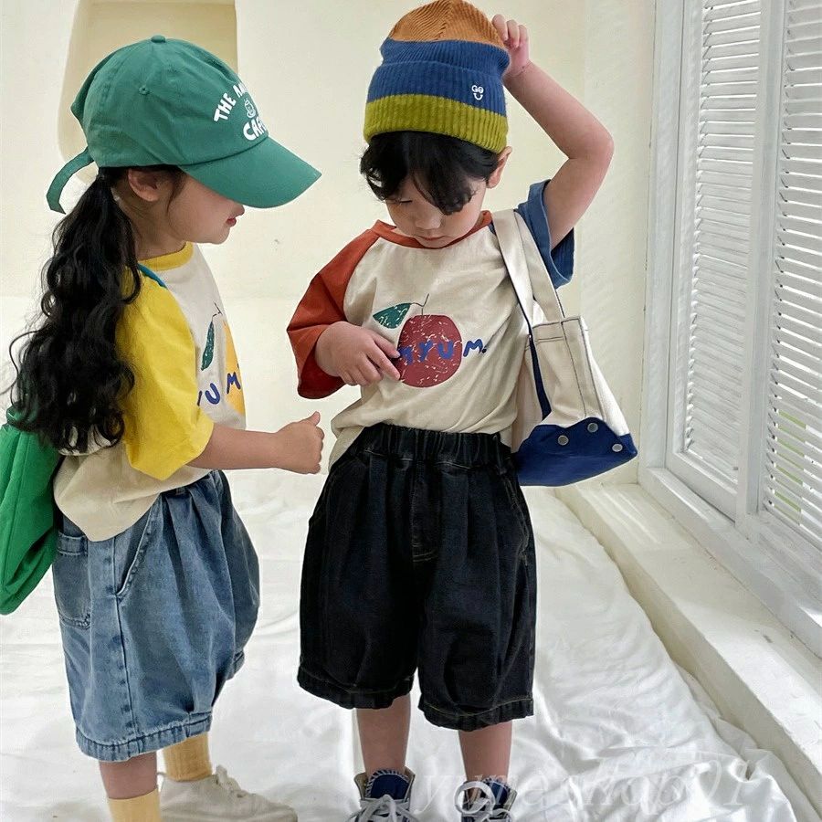 【15%offクーポン配布中! 子供えの夏の新しいしい肩袖tシャツ男女赤ちん果物アニメ半袖