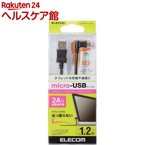 ELECOM TB-AMBXL2U12BK タブレット用microUSBケーブル/ 充電通信対応/ L字/ 2A出力/ A-microB/ USB2.0/ ブラック/ 1.2m【在庫目安:お取り寄せ】| パソコン周辺機器 USB ケーブル 充電 タブレット スマートフォン