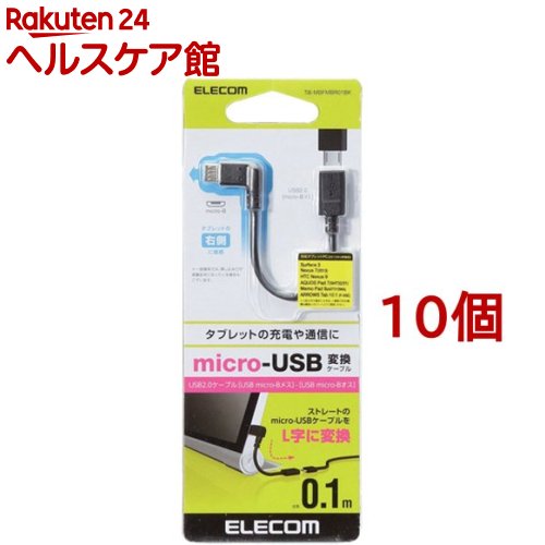 エレコム 変換アダプタ タブレット 充電 逆L字 microB メス-オス 0.1m TB-MBFMBR01BK(10個セット)【エレコム(ELECOM)】