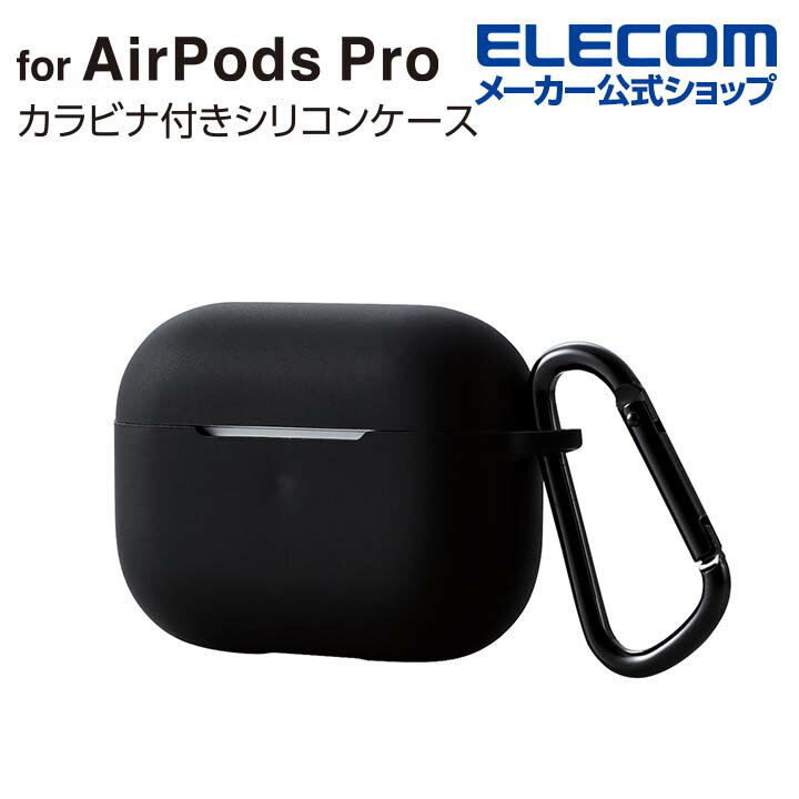 エレコム AirPods Pro 用 カラビナ付きシリコンケース エアポッズプロ 対応アクセサリ ケース カバー シンプル コネクタキャップ カラビナ付 ブラック ELECOM AVA-AP2SCBK