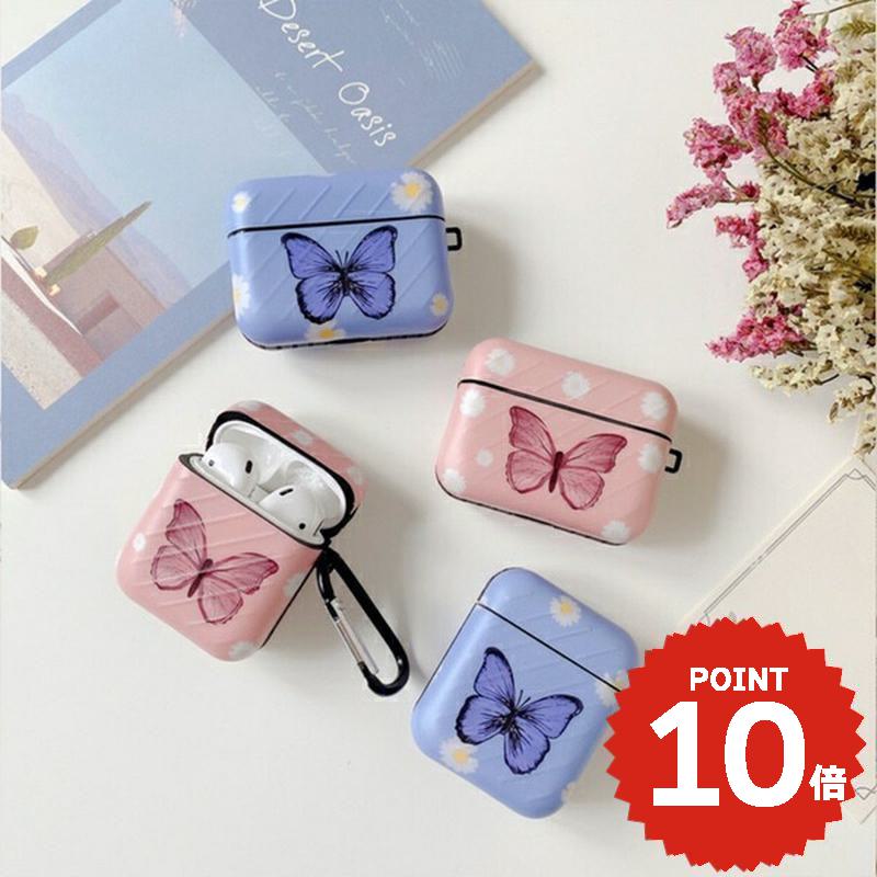 airpods ケース 韓国 airpods proケース おしゃれ 第2世代 ケース カバー ハード airpods 2 3 第3世代 第1世代 第2世代対応 シリコン 花ドット蝶々ケース 花 蝶々 フック付き カバー 大人 女性